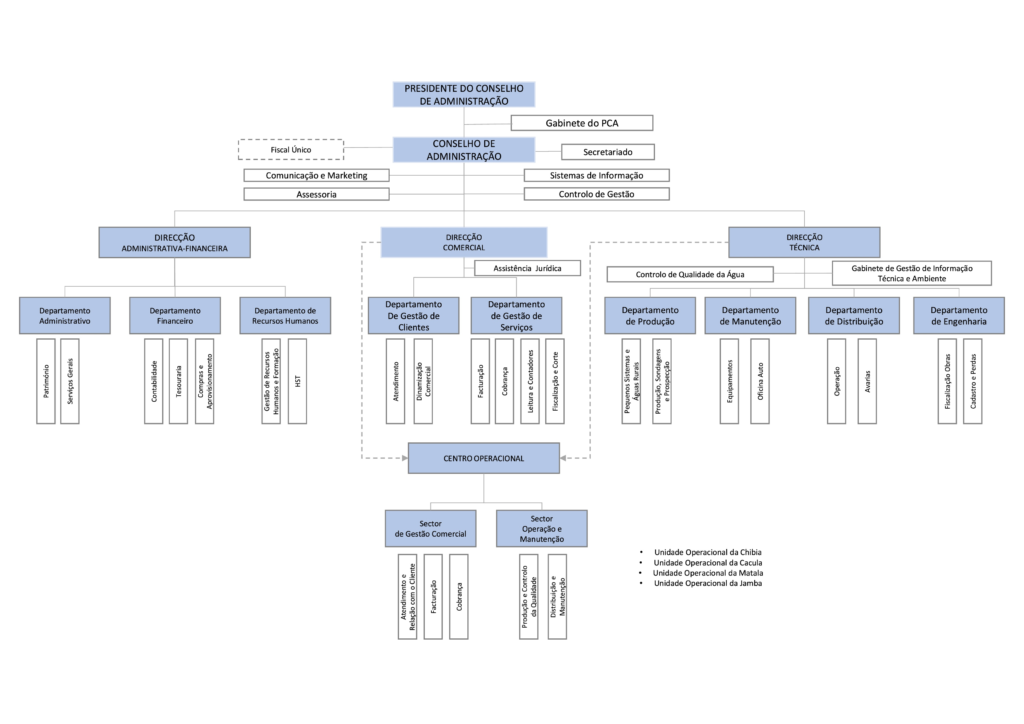 A 4 de Julho de 2017 foi nomeado o Conselho de Administração, constituído por três membros, Presidente do Conselho de Administração e dois Administradores, todos com funções executivas. O Conselho de Administração tomou posse em Setembro de 2018, data em que a EPASHUILA E.P inicia formalmente a sua actividade.